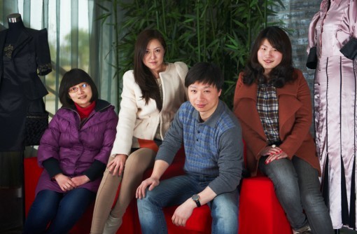 服装设计专业四位成员:袁为、余勘平、付培、洪叶(按画面从左向右排列)