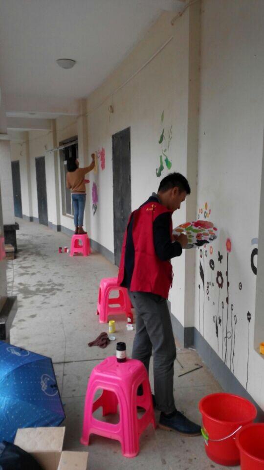 艺术系徐永辉、赵晓云、唐婉杉、熊磊、魏鹏、徐巍在内的几名志愿者,前往凤凰社区 绘制文化墙,开展宣传活动!