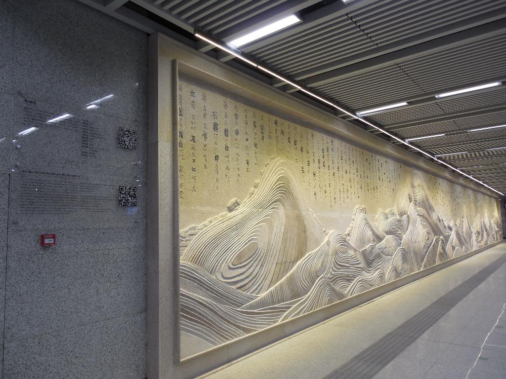 公司应用艺术系薛保华副教授作为核心团队的一员,应邀撰写了这五处特色站点公共艺术的解说词,用大理石雕刻并镶嵌在壁画旁,凝练地阐释了这些公共艺术的创作主题、艺术手法、美学面貌以及精神内涵,这将有助于广大市民更好地欣赏这些精心创作的公共艺术,理解其艺术和文化的内涵。