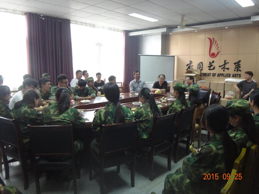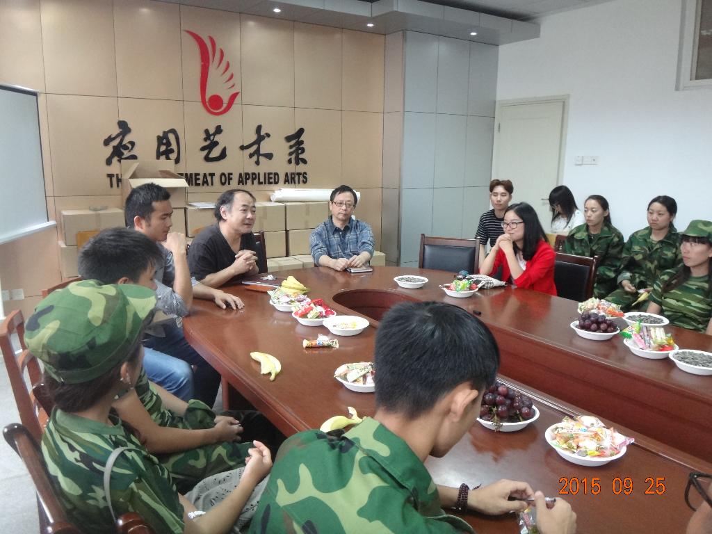 9月25日中午,应用艺术系在北区艺术楼一楼会议室举行中秋慰问暨新生代表座谈会。系党委书记邬宁、系主任杨勇、团总支书记张欢欢、15级辅导员叶舒出席座谈会,并为新生代表送上了节日的祝福。