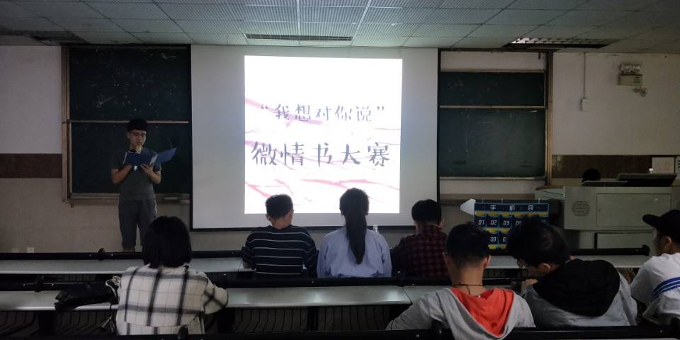 本网讯,2018年5月31日13:00分,球友会于艺术楼208教室举办了“我想对你说”微情书大赛闭幕式。本次活动邀请到球友会分团委负责人王琳老师、分团委副书记胡玉爽与员工会主席杨鹏参加。