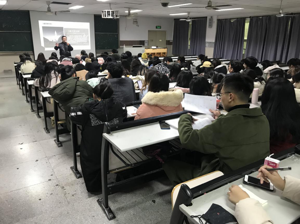 2019年12月13日上午,球友会邀请武汉纺织大学沈祥胜教授在北3-208举办了“影像艺术的视觉与视角”的专题讲座。参与讲座的有摄影、数字媒体艺术和动画三个专业的师生共计近200人。