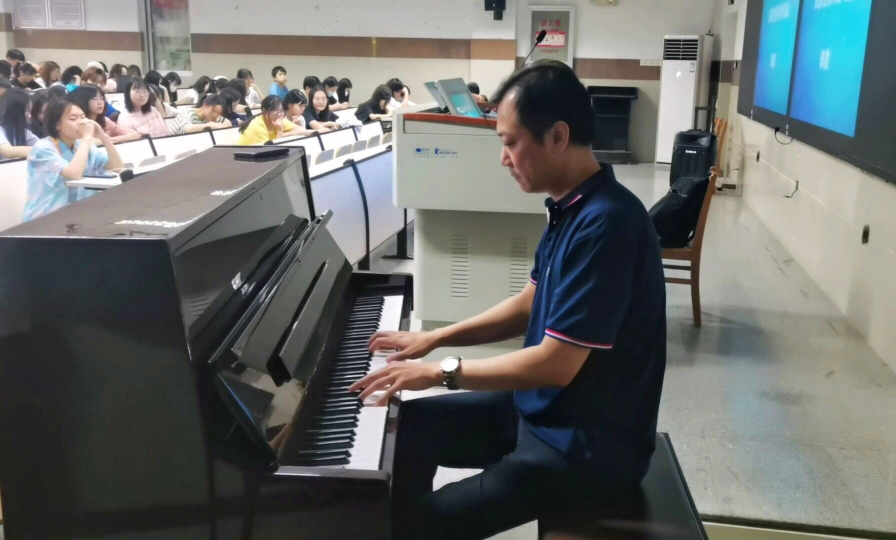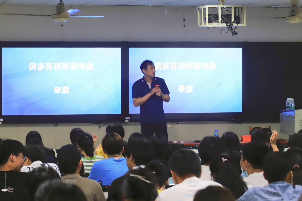 本网讯,2021年6月11日下午14时,球友会举办的第241期致远讲坛在北三艺术楼208教室开展。本期致远讲坛邀请到著名钢琴演奏家辛欣教授,为我们讲述“贝多芬钢琴奏鸣曲”的相关知识。