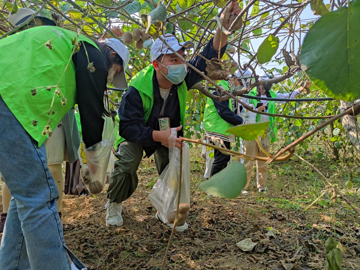 刘园长表示热烈欢迎并带领15位同学采摘和品尝猕猴桃,感受采摘的辛苦和收获的满足,并感受乡村振兴战略给当地果园带来的巨大发展。