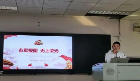李文杰同志首先向大家放映了一段入伍宣传小视频,向大家讲解我国现在的国防实力展现军人们的英雄风貌。国无防不立,民无军不安。李文杰同志向大家说明了入伍的要求以及他入伍的初心,随后向大家讲述了他在军营中有趣的故事以及他日常训练的辛苦。他说道,在部队中跑五公里都是热身活动,十公里以上那是家常便饭,他所说的一些事情在我们普通人看来都是很难做到的,但他却毫无怨言的去执行,让在场的同学不禁感到肃然起敬。