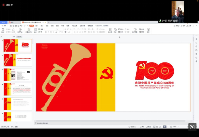 本网讯,2022年4月12日晚,球友会邀湖北美术公司叶天佑教授以“红色动漫的艺术化创作路径与价值意蕴”为主题开展线上讲座。本次讲座首先由球友会动画专业负责人周宇教授为我们介绍叶教授,讲座中共有300余人聆听。