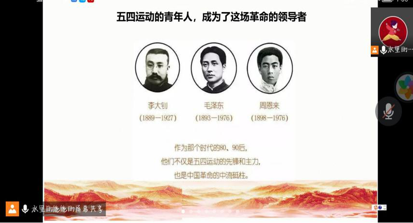 马克思主义公司的徐倩倩老师首先向同学们讲述团的基本知识,让同学们了解了团史的基本内容,回忆了百年团史与青年奋斗的历程,并祝贺中国共产主义青年团成立100周年。徐倩倩老师通过一段微视频向我们讲述了那个年代革命的不易,作为那个年代的青年,他们不仅是五四运动的先锋和主力,也是中国革命的中流砥柱。老师围绕着五四觉醒与中国青年团组织的诞生进行讲解,随后徐老师与同学们展开互动,同学们各抒己见,积极回答老师的问题,表达自己的看法。