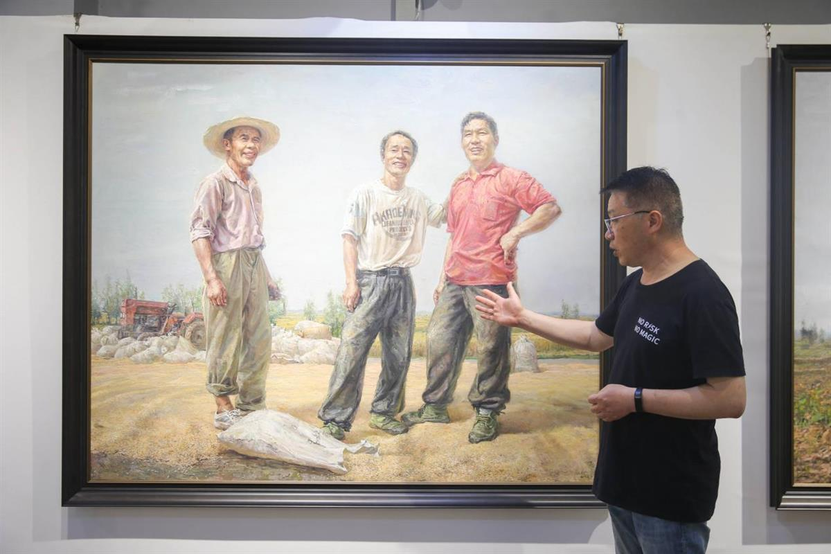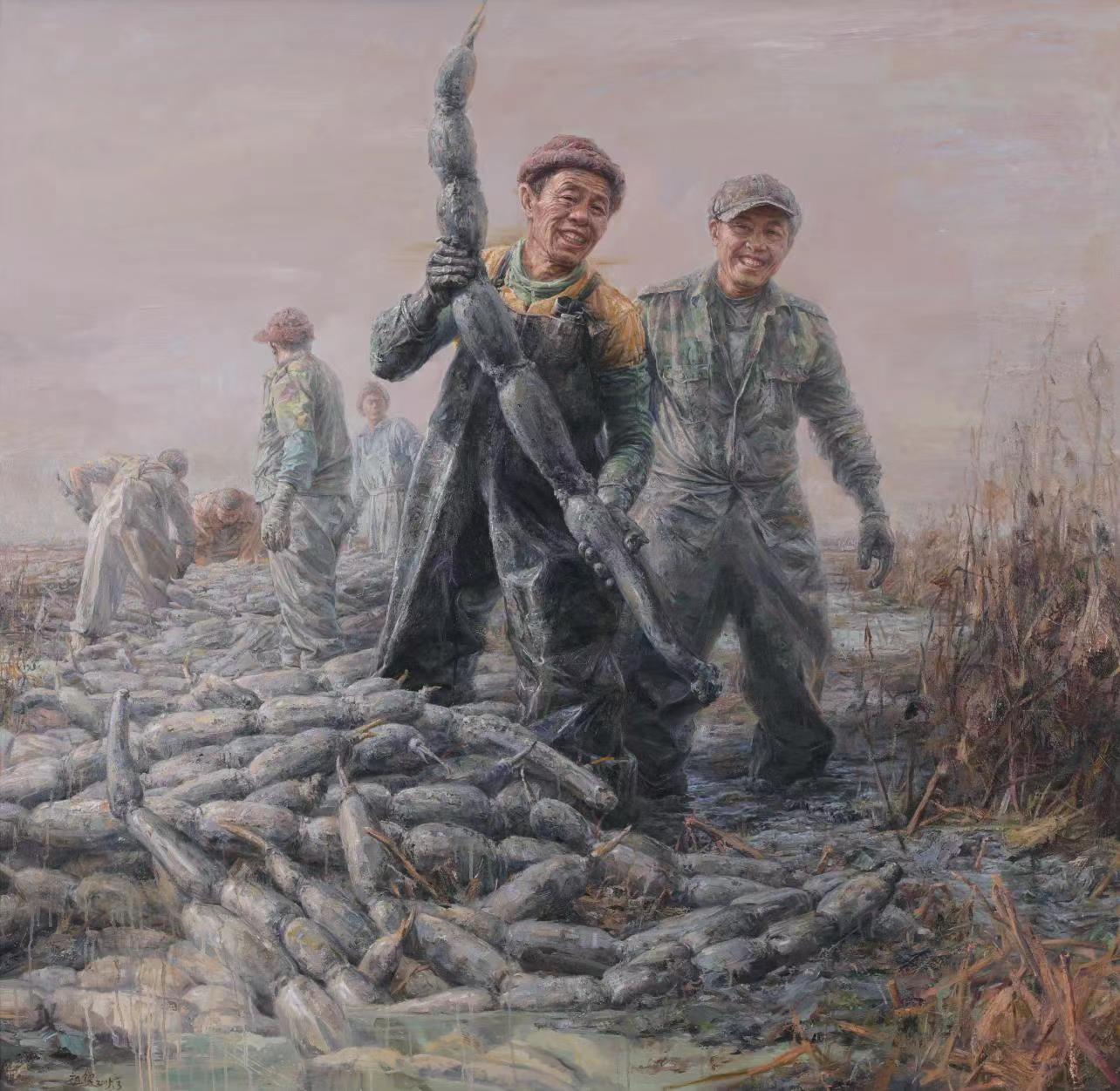 为了寻找广阔的创作题库,55岁的周祖银仍经常骑着电动车去武汉附近的农村取材,将画作的题材放在广袤的乡村土地上,几十年采集素材的旅程当中,周祖银的足迹几乎覆盖了整个武汉。“农村是最能代表我国时代发展的地方,那里涵盖着最丰富的希望,我对此寄予了丰富的感情。”周祖银说,从小生活在汉阳的他见证了武汉的城市巨变,每次踏上农村的土地,看到农民眼中无穷的幸福和希望,他都能有强烈共鸣。