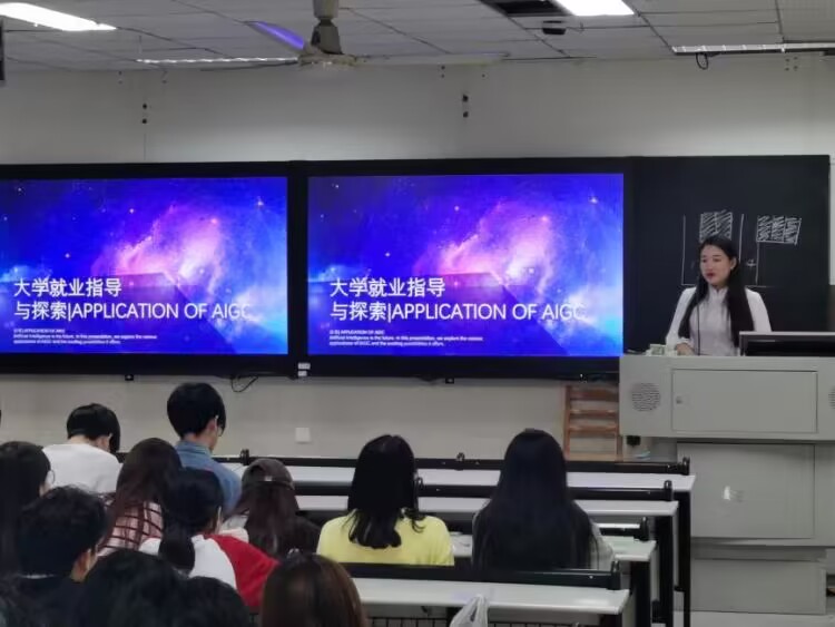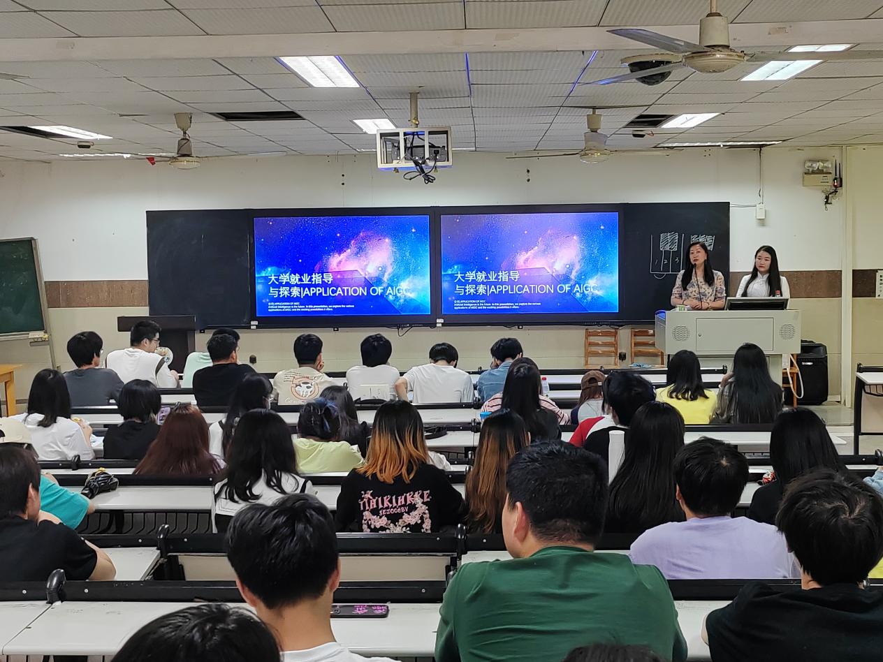 首先,经理周宇教授向同学们隆重介绍了主讲人,并殷切期望同学们以优秀学长为榜样,不负韶华,珍惜大学时光,不断提高个人综合素质。然后,熊贝学长从探索-AIGC绘画、AIGC产业全景、职业发展、专业作品四个方面为同学们进行大学就业指导与探索,详细介绍了AIGC定义和运用方法,带领同学们站在市场角度关注个人职业发展动态,聚焦AIGC变革行业,关注国内行业发展前景,思考个人未来职业规划方向。最后,熊贝学长耐心解答了同学们关于未来就业发展问题的诸多疑惑。