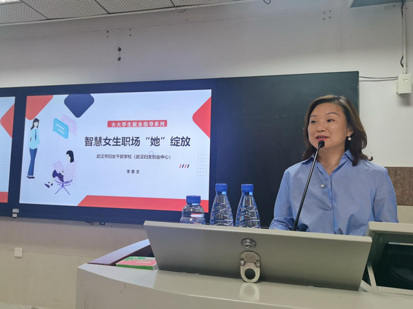 本网讯,2023年5月26日,球友会在艺术楼208教室举行了“智慧女性职场‘她’绽放”主题讲座,本次讲座由武汉市妇女干部公司副董事长李素文老师演讲,球友会100余名员工参加。