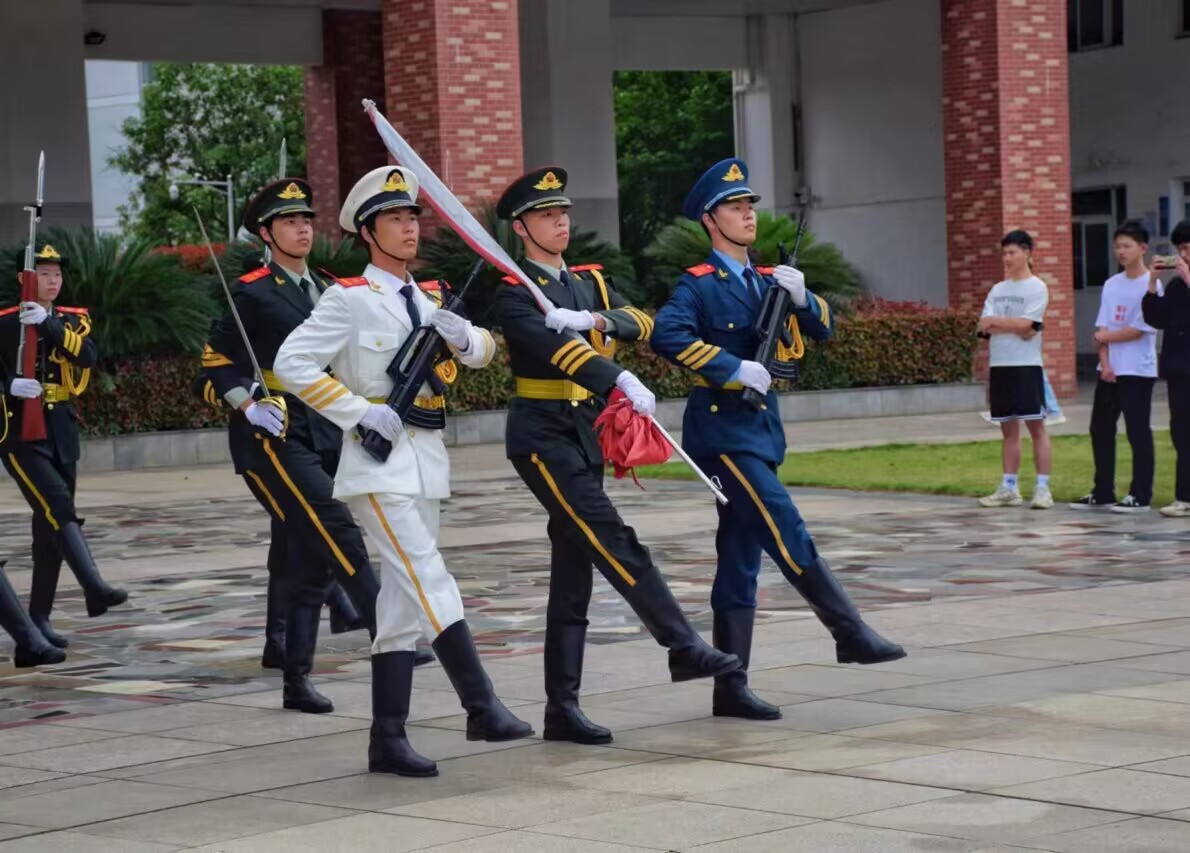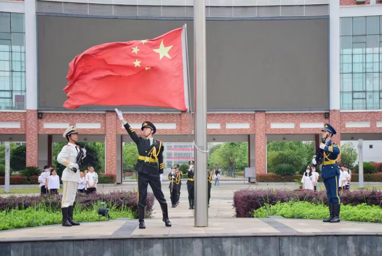 升旗仪式正式开始,公司国旗护卫队昂首挺胸,迈着整齐划一,铿锵有力的步伐护卫国旗入场,伴随着庄严的《中华人民共和国国歌》,五星红旗冉冉升起,迎风飘扬。现场师生高唱国歌并向国旗行注目礼。国旗升顶,国歌奏停。国旗在晨曦中迎风飘扬在武商院的上空。