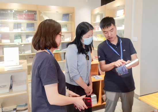 在走访过程中,企业负责人周谊涛引导公司一行分别进入印刷车间、设计制作部、图书展示区及其他办公场所参观。重点讲解了企业生产技术、工艺流程、设施设备等相关情况,同时也介绍了员工管理培养机制、员工福利、员工技能要求等与员工实习就业密切相关的情况。