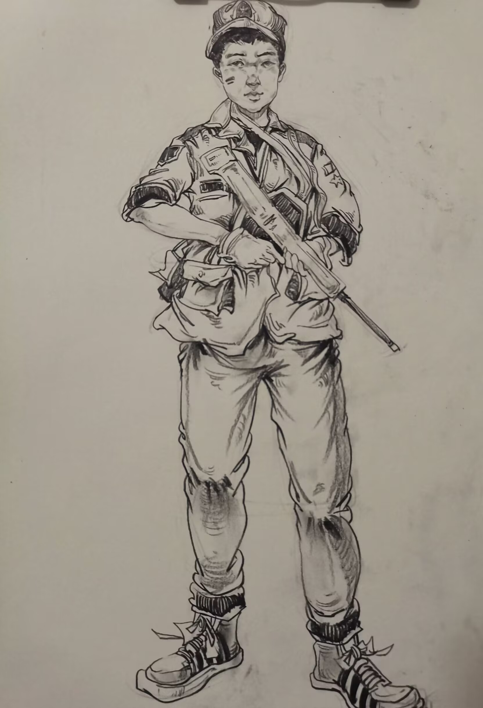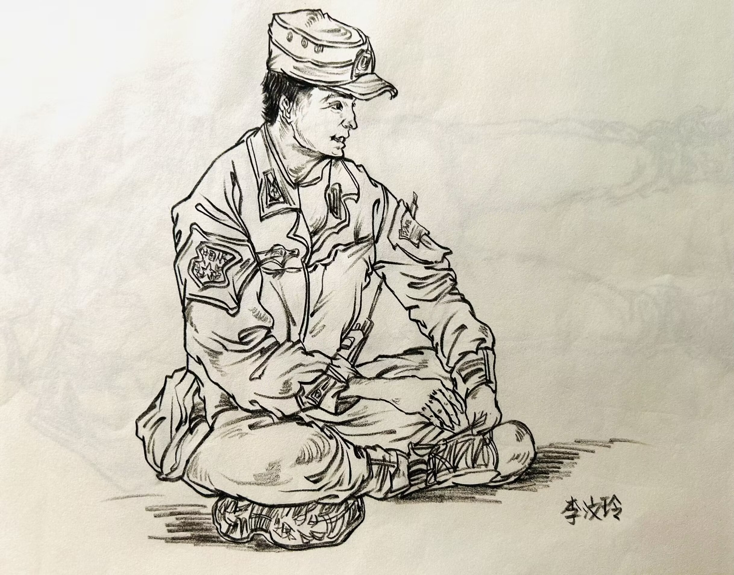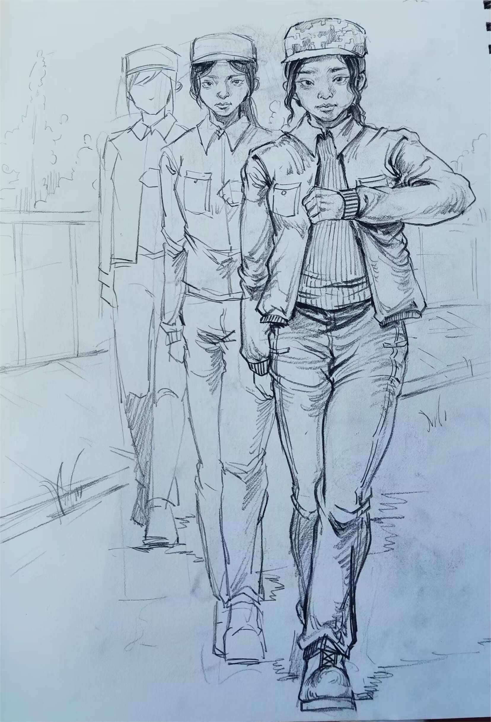 在跟训过程中,他们用自己的笔尖绘出同学们英姿飒爽的模样,将自己的热情释放在笔上,用目光积极的捕捉着同学们的姿态,用笔记记录着同学们的风采,为同学们和教官们的军训时光留下一笔美好的回忆。