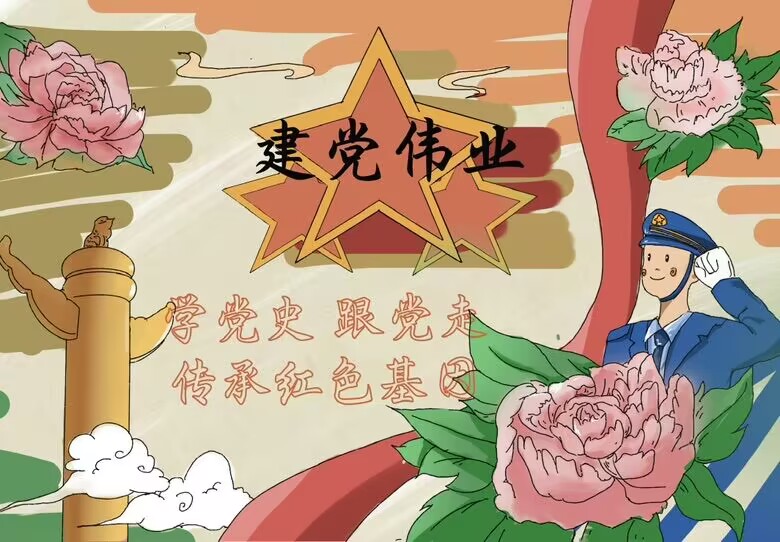 党员同志们在开展艺术创作过程中,收集各类历史素材,加深对党的认识。这些作品包括红船精神、具有影响力的革命杂志《新青年》、天安门广场和“华表”以及党的领导下科技水平自立自强等元素。作品传达了党员们对党的理解、热爱,以及对红色精神的深入学习与感悟。