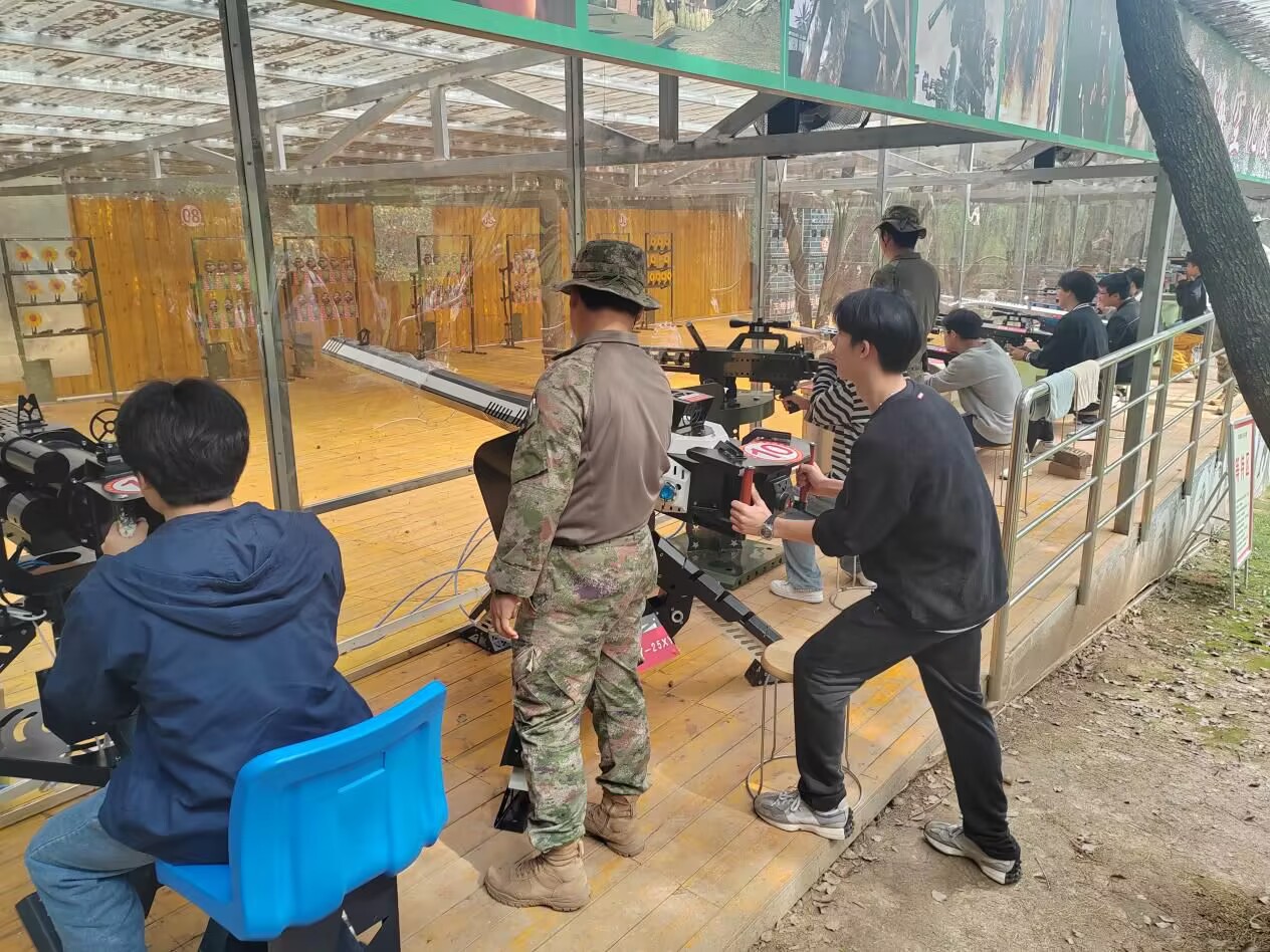 参观结束后,员工党员与两个班级的同学们依次进行了模拟射击、迫击炮试射项目。通过本次训练增强了他们对国防和枪械的认识。