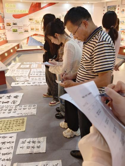 比赛采用抽签方式决定上场顺序,分二批进行。比赛开始,参赛选手们热情高涨,纷纷就位,他们或挥毫泼墨,或笔走龙蛇,或端庄秀丽,或奔放不羁,用自己的方式诠释着对书法的热爱和对中华文化的传承。现场气氛热烈而庄重,评审及观众们也被选手们的精湛技艺所折服,不时发出赞叹之声。