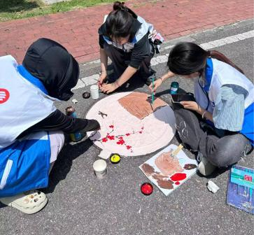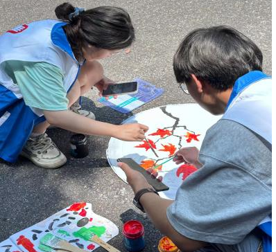在活动现场,天气炎热,艳阳高照,志愿者们冒着35°的高温在大太阳下绘画,没有一点怨言。他们组织有序,分工合作,有的负责设计图案,有的负责涂鸦,有的负责拍照留念。志愿者在制画过程中,许多老人驻足观看,纷纷夸赞同学们画得好,还有位老奶奶是学国画的,她亲自拿笔与同学们一起绘制,喜悦之情写在脸上。他们用实际行动诠释了“奉献、友爱、互助、进步”的志愿者精神,为老人们营造了一个温馨、和谐的生活环境。