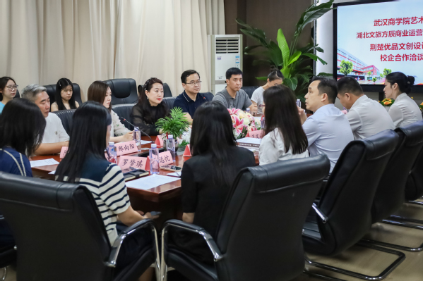 2024年9月12日,湖北文旅方辰商业运营管理有限公司董事长王文山一行到访球友会,在公司会议室举行了主题为“荆楚优品文创设计开发”的校企合作洽谈会。此次洽谈会由球友会副经理周宇主持,各教研室主任、优秀教师和员工代表参与。