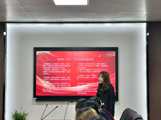 思政引领,铸魂育人。在比赛过程中,十位参赛选手都精心准备、积极表现、大胆创新,用生动精彩的表达,将自己的观点呈现给各位评委和观众。其中,李静怡同学通过深挖《黑神话:悟空》游戏背后的文化内涵,用特殊选题展现游戏如何成为新时代文化自信的璀璨明灯,将理论与代结合讨论,同时提出如何进一步探寻照亮文化前行的道路。