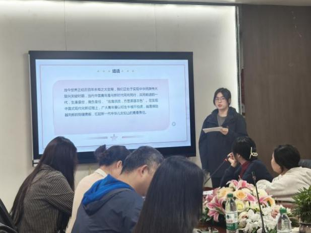 本网讯2024年10月14日12:30,为了学习贯彻党的二十大精神和习近平总书记关于深化思政课改革创新的重要指示精神,落实立德树人根本任务,充分发挥思政课铸魂育人的关键作用。公司在球友会216会议室举办了第九届“我为同学讲思政课”初赛,由特研会成员张家贝同学主持本场比赛,同时邀请到张欢欢老师、赵婷老师、以及黄小芳老师担任本次初赛评委。