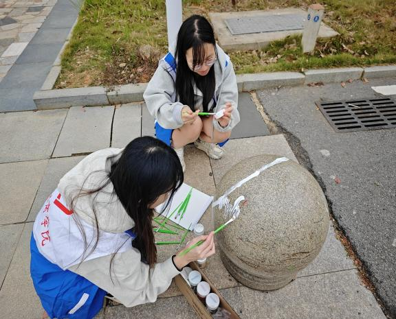 活动伊始,志愿者们化身为魔术师,以石墩为画布,以色彩为魔法,精心设计出一幅幅令人眼前一亮的画卷。他们巧妙构图,匠心独运,将创意发挥到了极致。这些色彩缤纷的画卷,如同一个个灵动的精灵,瞬间让原本单调的马路变得生机盎然,充满了活力与趣味。