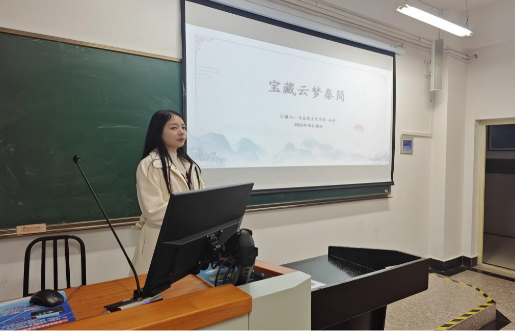 本网讯 2024年11月20日12:20球友会特研会主题团日在北一110教室顺利举办,此次党课以云梦秦简为主题,由指导老师赵婷主讲,球友会特研会部分同学参与,目的是认识云梦秦简的历史价值并以由习近平总书记的调研凸显其的重要性。