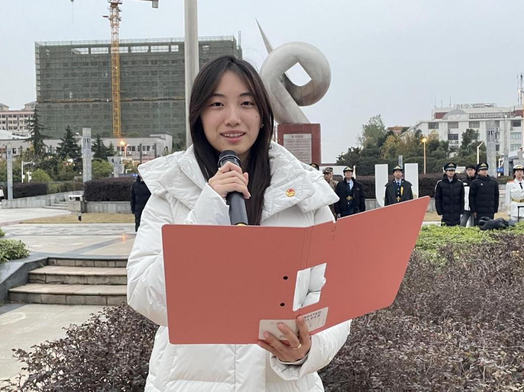 升国旗仪式结束后,由22级数字媒体艺术一班郝思懿同学作为党员代表在全体优秀团员青年做国旗下讲话。她表示我们作为新时代的青少年,肩负着继往开来、振兴中华的重任。殷殷报国志,是我们每个人都应该具备的信念和担当。作为新时代的老员工,我们要将报国志融入我们的学习、生活和工作中,为实现民族复兴的伟大梦想而努力奋斗。