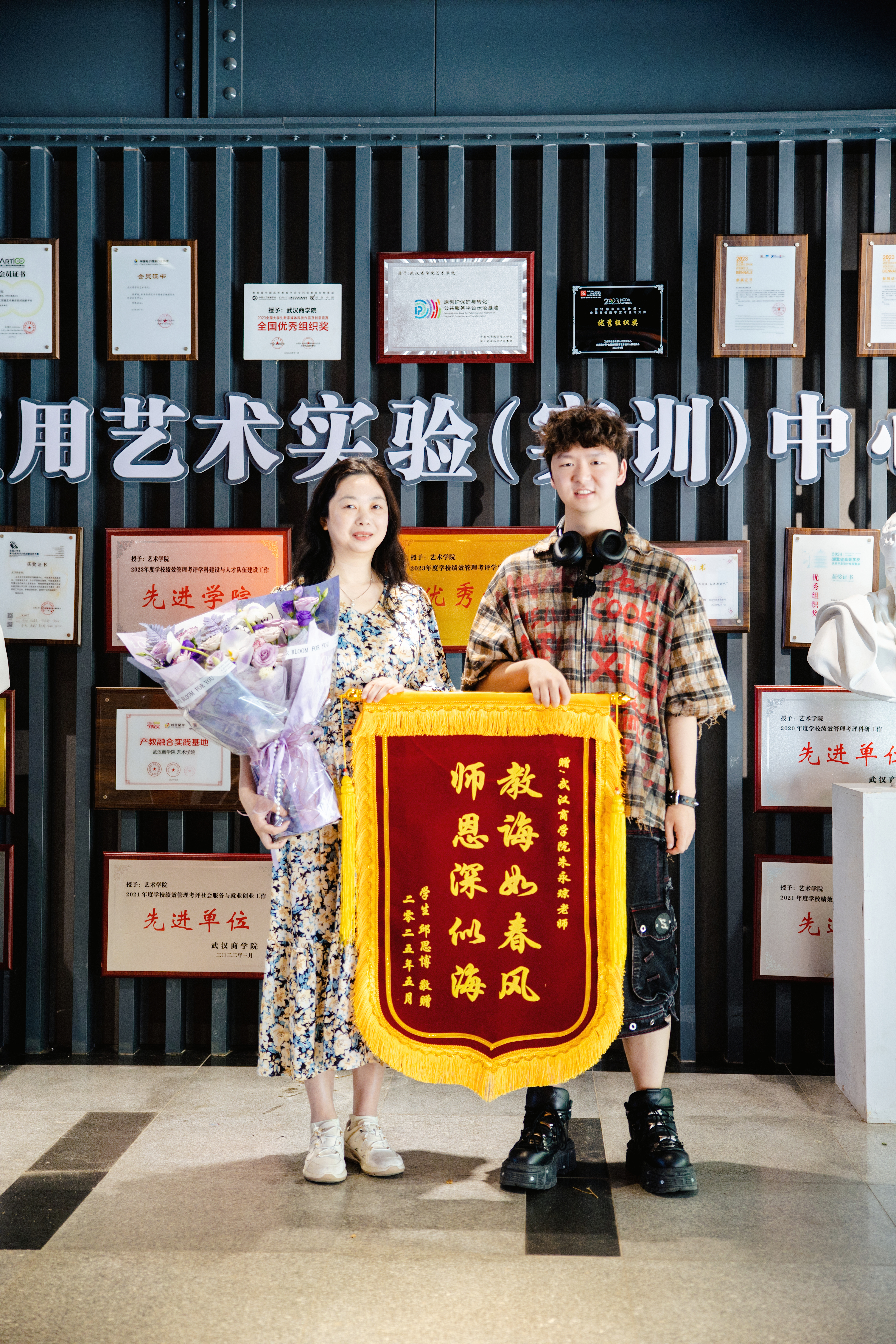 5月12日,邱思博同学和他妈妈专门赶到公司球友会,为邱思博的班主任、毕业指导老师、球友会教学科研负责人朱永琼老师敬献锦旗和鲜花,感谢公司、公司和老师对孩子的培养。数字媒体艺术系邢向阳主任、教师代表代涛涛博士对家长的到来表示感谢。