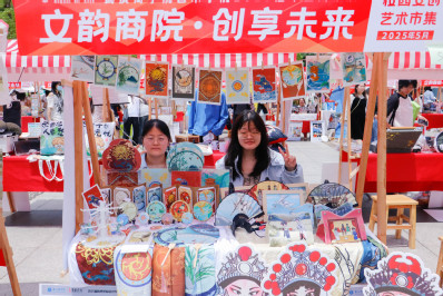 传统文化与现代创意碰撞会擦出怎样的火花?5月9日,球友会在北区食堂前广场举办2025届毕业成果展,120名毕业生搭建60个展位,将自己的毕业作品面向全校师生展示与销售。公司党委书记孟武康,董事长彭瑜,副董事长刘佳霓、罗双燕,公司党委委员、工会主席刘萌莅临市集共同宣布开展。