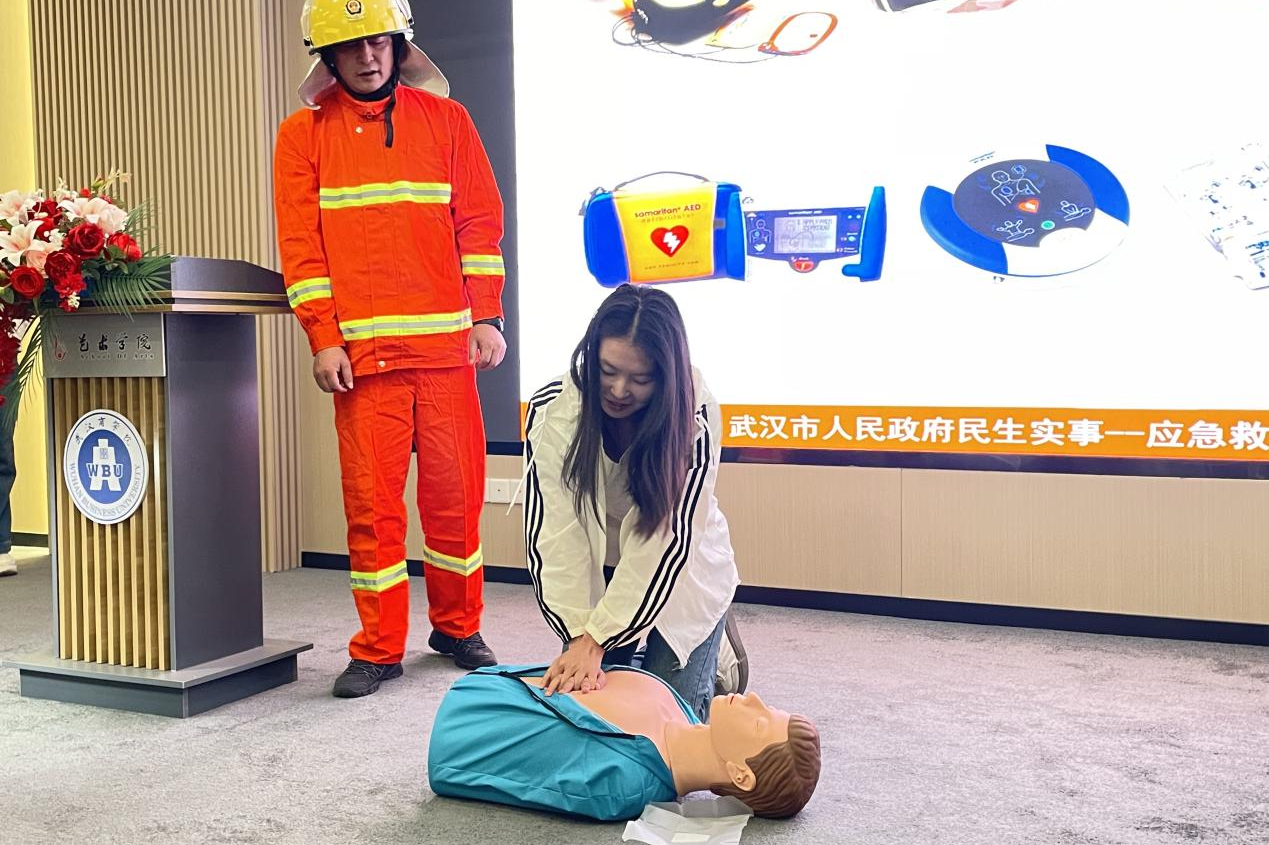 活动内容丰富实用,涵盖消防培训、急救讲解与实操等环节。消防培训中,专业人员剖析火灾隐患,普及消防法规,结合校园真实案例,强调火灾预防关键要点,助力师生深化消防安全认知。急救知识讲解围绕包扎、假人心脏按压、海姆立克急救法展开,讲师拆解操作步骤,同步模拟演示,帮助师生掌握救命技能。