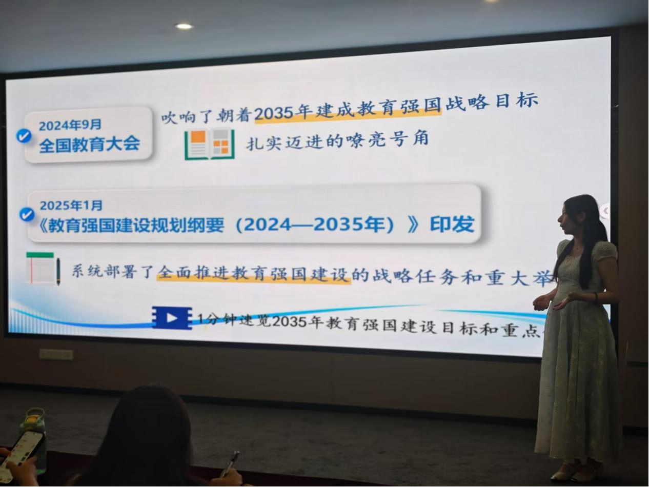 此次党课不仅使同学们对我国教育事业的发展现状和未来方向有了更清晰的认识,也进一步激发了他们在各自岗位上为推动教育强国建设贡献力量的热情和决心。大家纷纷表示,将以此次党课为新起点,立足本职工作,积极投身教育改革实践,为实现2035 年建成教育强国的战略目标不懈奋斗,在新时代的教育征程中跑好手中的这一棒,奋力书写以教育强国建设支撑引领中国式现代化的时代新篇。